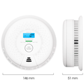 Deze combimelder meet tegelijk rook én koolmonoxide. Als de melder brand of rook detecteert, geeft deze melder een andere alarmtoon en kleurt het LCD-scherm anders dan bij een te hoge koolmonoxidewaarde. Deze melder heeft een geavanceerde optische technologie: rookingang via plafondzijde voor sneller detectie. Het LCD-scherm geeft ook de batterijstatus en de temperatuur in de ruimte aan