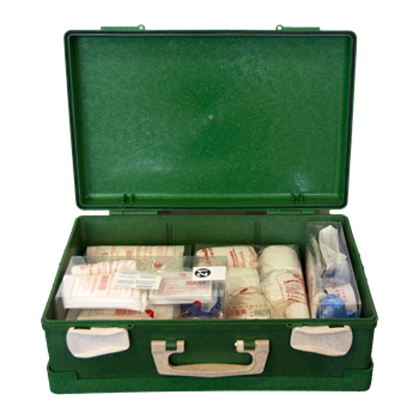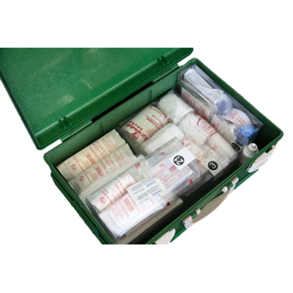 BHV verbandkoffer richtlijnen 2021 modules gemaakt van 100% gerecyclede materialen. Voorzien van wandbevestigingssteun, handvat voor transport en sluiting met 2 roterende clips.