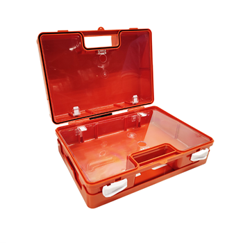 Maak kennis met de oranje lege verbandkoffer inclusief een beugel, waarin u de inhoud naar eigen wens kunt indelen. Met deze handige oplossing heeft u altijd de benodigde spullen binnen handbereik, precies zoals uw ze wilt hebben.